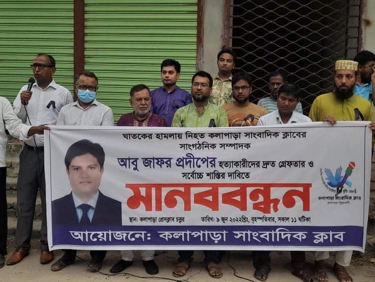 কলাপাড়ায় সাংবাদিক প্রদীপ হত্যাকাণ্ডের প্রতিবাদে মানববন্ধন ও সমাবেশ