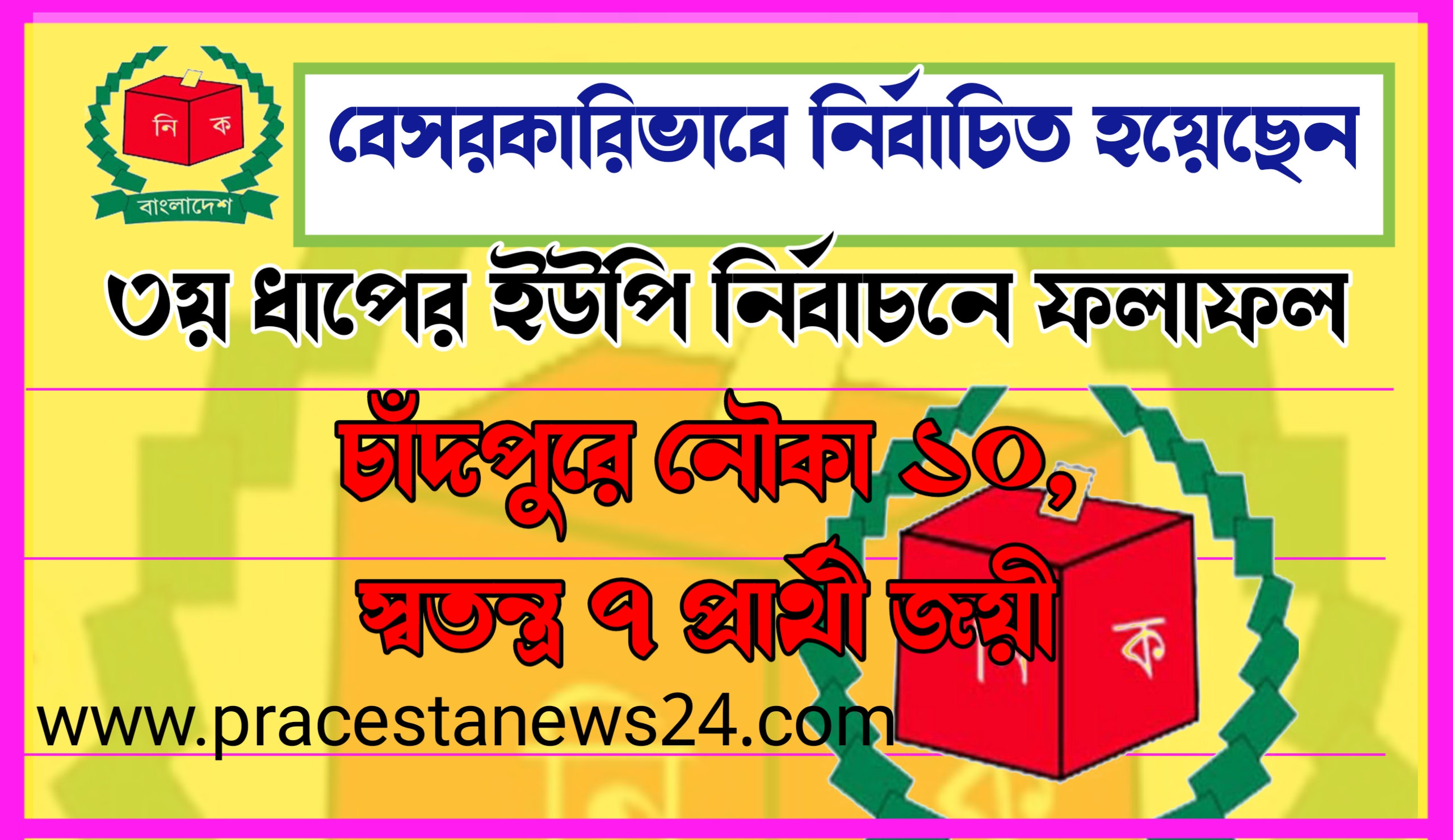 চাঁদপুরে ৭ ইউপিতে বিজয়ী স্বতন্ত্র প্রার্থী, ৫টিতে নৌকার জয়