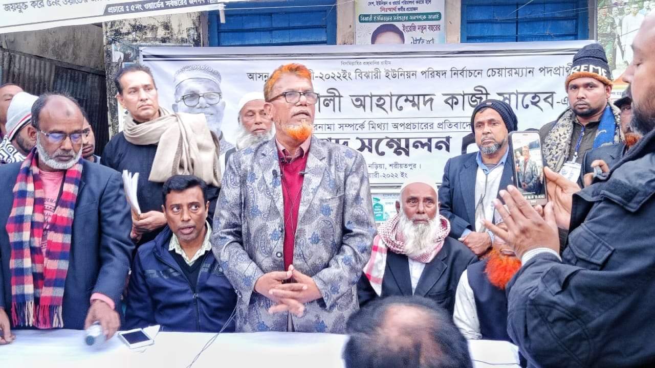 চেয়ারম্যান প্রার্থীর বিরুদ্ধে মিথ্যা প্রচারের প্রতিবাদে সংবাদ সম্মেলন