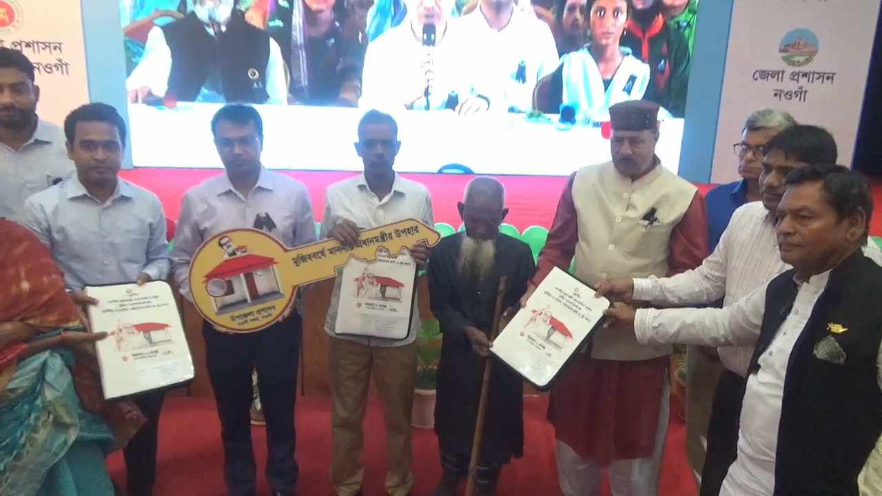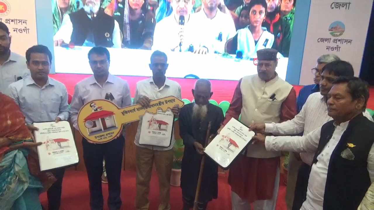 মজিব বর্ষ উপলক্ষে সরকারের আশ্রয়ণ প্রকল্পের আওতায় চতুর্থ পর্যায়ের দ্বিতীয় ধাপে সারাদেশে ২২হাজার ১০১টি ভূমিহীন-গৃহহীন পরিবারকে পুনর্বাসন কর্মসূচির আওতায় ২শতাংশ খাস জমিসহ গৃহ প্রদান কর্মসূচীর আনুষ্ঠানিক উদ্বোধন করেন এবং সেই সাথে সারাদেশের ১২৩ টি উপজেলাকে ভূমিহীন ও গৃহীন ঘোষণা করেন প্রধান মন্ত্রী শেখ হাসিনার । বুধবার (৯ আগস্ট) সকালে তার সরকারি বাসভবন গণভবন থেকে একটি ভার্চ্যুয়াল অনুষ্ঠানের মাধ্যমে সারাদেশে একযোগে এই গৃহ প্রদান কর্মসূচির উদ্বোধন করেন তিনি। এরই অংশ হিসেবে প্রধানমন্ত্রীর আনুষ্ঠানিক উদ্বোধন শেষে নওগাঁ জেলায় ২০২টি ভূমিহীন-গৃহহীন পরিবারের মাঝে প্রধানমন্ত্রীর উপহার আশ্রয়ণ প্রকল্পের নতুন ঘরের চাবি ও কাগজপত্রাদি হস্তান্তর করা হয়।এরমধ্যে সদর উপজেলার ১৩০টি, আত্রাই উপজেলার ৪৫টি এবং বদলগাছি উপজেলায় রয়েছে ২৭টি ঘর। একই সঙ্গে মাননীয় প্রধানমন্ত্রী সারা দেশর সঙ্গে হালনাগাদ নিরূপিত ভূমিহীন-গৃহহীন পরিবারের তালিকা অনুযায়ী জেলার সদর, আত্রাই, বদলগাছী, নিয়ামতপুর, মান্দা, পোরশা ও সাপাহার উপজেলায় সকল ভূমিহীন-গৃহহীন পরিবার পুনর্বাসিত হওয়ায় এই সাতটি উপজেলাসহ হালনাগাদ তালিকা অনুসারে পুরো জেলাকে ভূমিহীন-গৃহহীনমুক্ত ঘোষনা করেন প্রধানমন্ত্রী।
