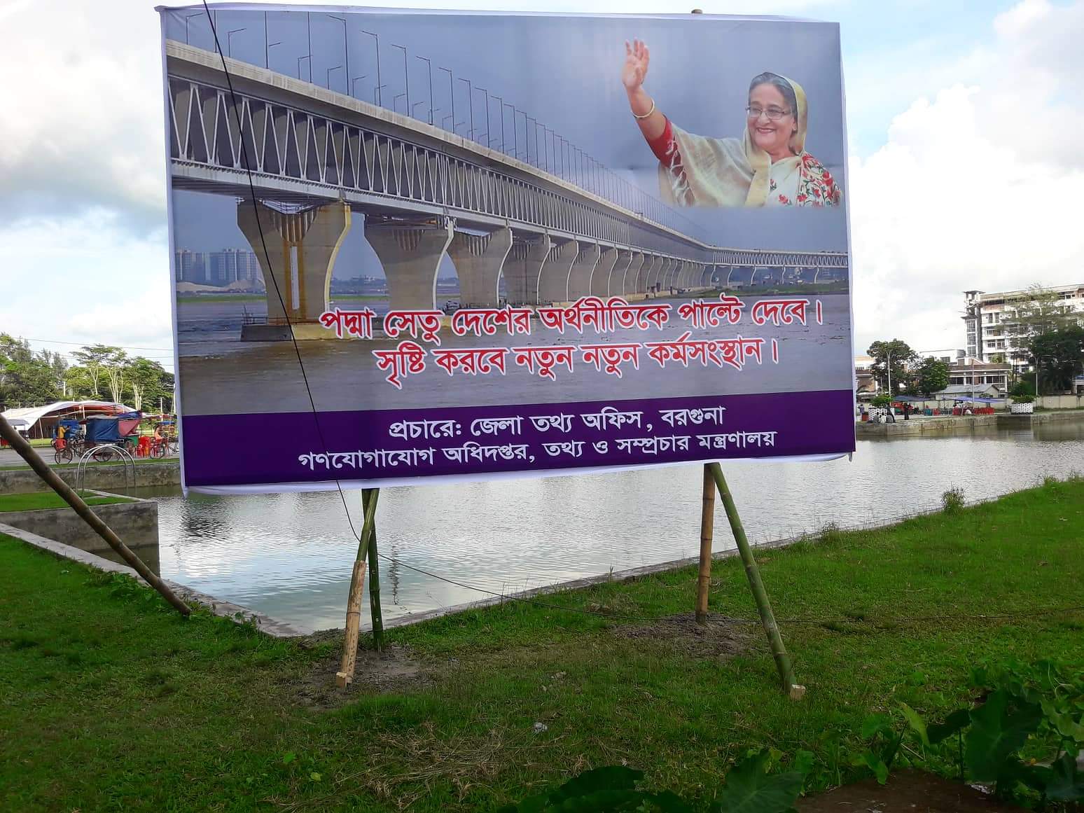 “স্বপ্নের পদ্মা সেতু” দক্ষিনাঞ্চলের তথা দেশের সকল মানুষের কাছে এখন আর স্বপ্ন নয়, বাস্তব। রাত পেরুলেই সকালে স্বপ্নের পদ্মা সেতু নয় বরং বাস্তব পদ্মা সেতুর শুভ উদ্বোধনের সেই মাহেন্দ্রক্ষণ। আর এই পদ্মা সেতুর উদ্বোধন উপলক্ষে বরগুনা জেলা তথ্য অফিসের পক্ষ থেকে চালানো হচ্ছে ব্যাপক সড়ক প্রচার, টানানো হয়েছে বিভিন্ন শ্লোগানযুক্ত ফেস্টুন।