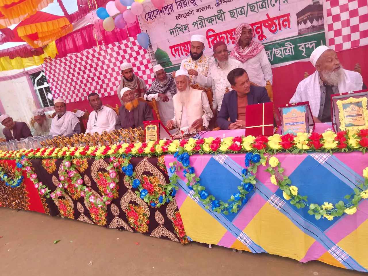 মোঃ জাকারিয়া কুমিল্লা প্রতিনিধিঃ কুমিল্লা জেলার চৌদ্দগ্রাম উপজেলার চৌমুহনী বাজার সংলগ্ন হোসেন পুর রিয়াজুল জান্নাহ হাফেজিয়া -দাখিল মাদ্রাসার ২০২৪ ইং সনের দাখিল পরিক্ষাত্রীদের বিদায়ী দোয়া ও গত বছরের মেধা তালিকায় যারা উত্তীর্ণ হয় তাদের পুরুস্কার বিতরন ও অভিভাবক সমাবেশ অনুষ্ঠিত হয়। উক্ত অনুষ্ঠানে সভাপতিত্ব করেন জনাব আলহাজ্ব ইন্জিনিয়ার আবদুল হাকিম সাহেব, প্রতিষ্ঠাতা ও সভাপতি অএ মাদরাসা। প্রধান অতিথিহিসাবে উপস্থিত ছিলেন আলহাজ্ব মাওলানা মোহাম্মদ আবদুল বারী সাহেব। সাধারণ সম্পাদক অএ মাদরাসা।